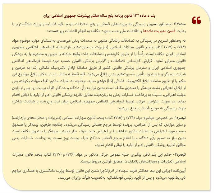(موضوع تسریع در رسیدگی به تصادفات رانندگی منتهی به صدمات بدنی غیر عمدی)